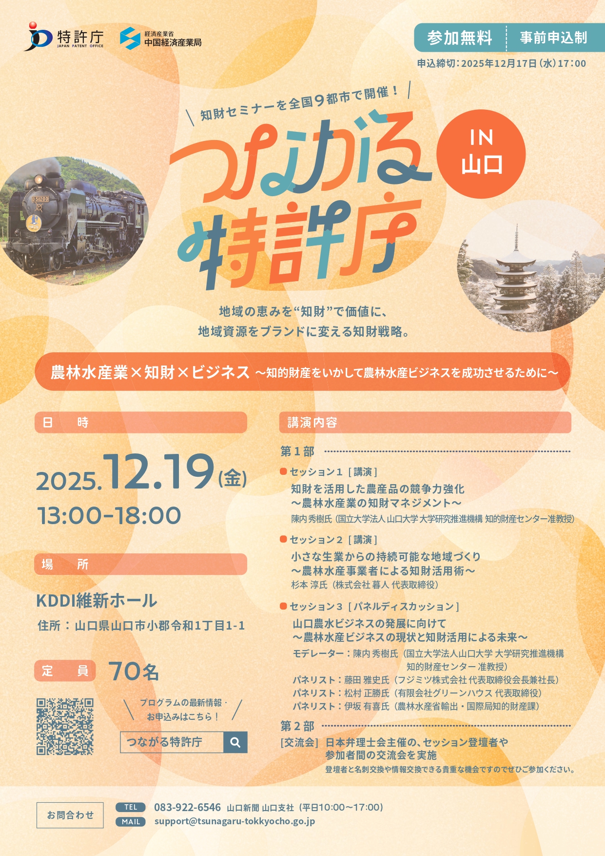 「つながる特許庁in山口」を開催します!(中国経済産業局)